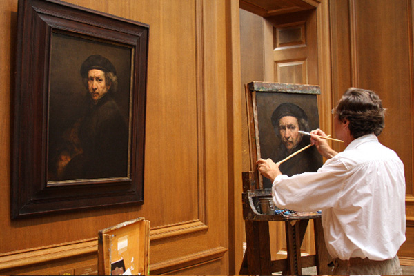Truly a dream come true. The last time I copied was at the Metropolitan Museum of National Art in New York City some 25 years ago when I was an art student. It made such an impression on me then and I always encourage my students to try and make the opportunity happen for themselves. Well, I took my own advice and made it happen! What an experience – to be surrounded by masterpieces all day long. I literally had to pinch myself. And to top it off, I received permission to copy Rembrandt – my hero!! A self-portrait painted in 1659 at the age of 53. During this period, he declared bankruptcy and lost everything.